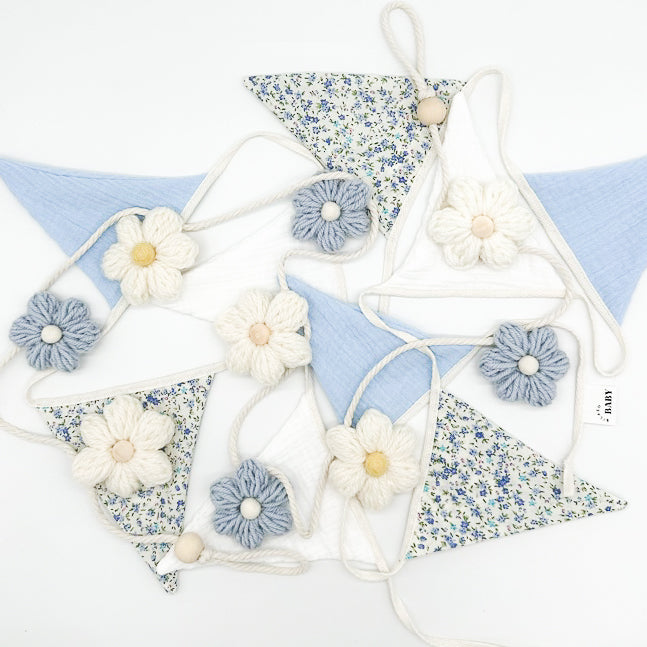 Introducing our beautifully hand crafted, Daisy Bunting. Our Gingham Bunting consists of 9 flags. Gingham flags are reversible, can be mini gingham or larger gingham. Extra length at each end to tie or use the already made loops to loop onto nails. Mix and match with our Meadow Wall Butterflies and our Meadow Garland for a complete look.
